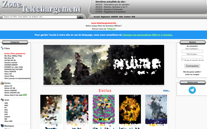 Im Jahr 2012 wurde Zone-Téléchargement geboren. Die Seite wurde schnell bekannt für ihr ziemlich unglaubliches Angebot an Filmen und Serien zum kostenlosen (und damit illegalen) Download, egal ob in VF oder VOSTFR. Letzteres wird wegen seiner Benutzerfreundlichkeit sehr geschätzt – es erfordert keine Software von Drittanbietern wie bei YggTorrent und Cpasbien – aber auch wegen seiner sehr aktiven Community, die nicht zögert, Inhalte nur wenige Stunden später zu veröffentlichen ihre Freilassung.