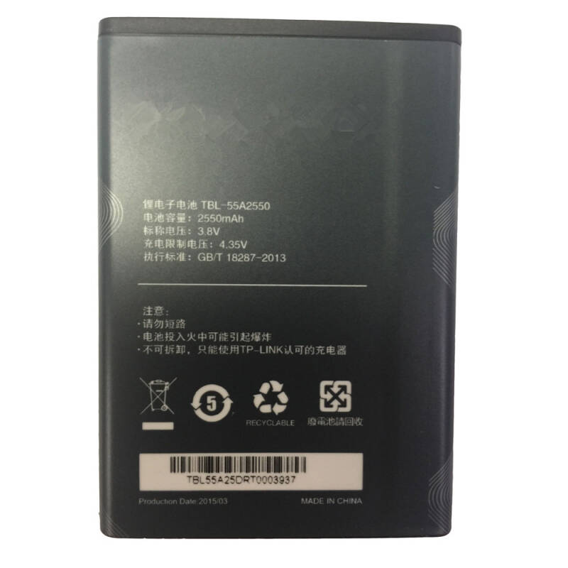 Mit diesem TBL-55A2550 Li-Polymer-Akku erwerben Sie ein Qualitätsprodukt. Der TBL-55A2550 Akku ist 100% baugleich zu dem TP-LINK TL-TR961 M7350 Original Akku. Alle TBL-55A2550 Akkus sind nach höchsten europäischen Qualitätsstandards hergestellt und zeichnen sich durch extreme Langlebigkeit aus.